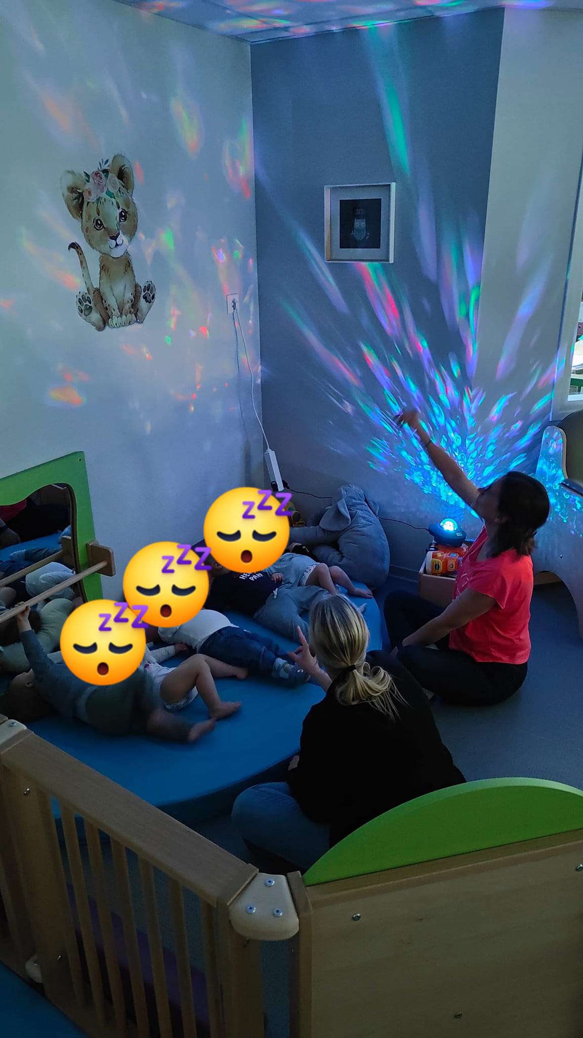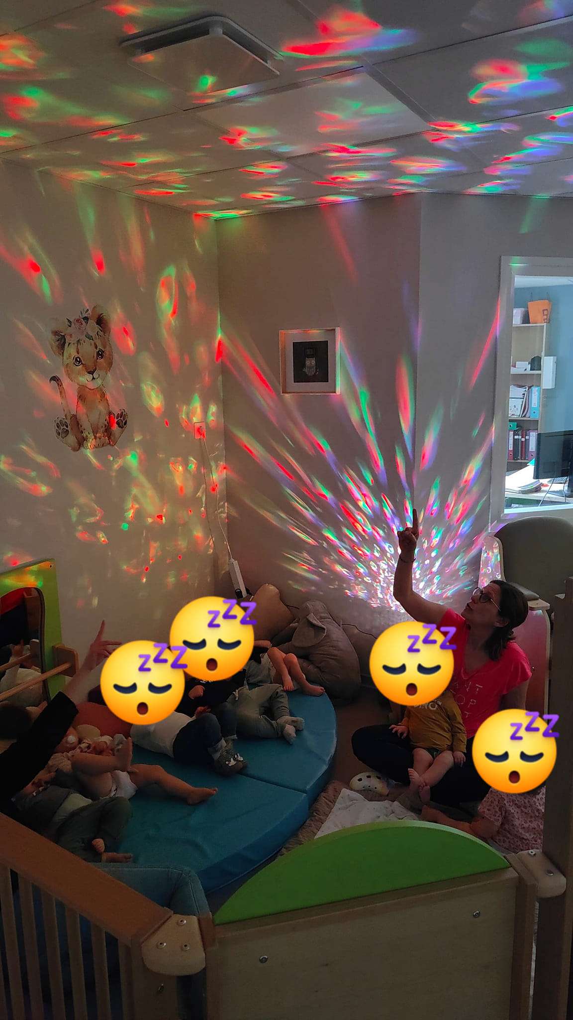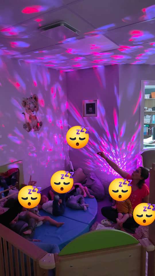 Snoezelen est avant tout une philosophie d’approche. Cet espace, mis en place au sein de la micro-crèche, fait partie de notre pédagogie afin de favoriser le bien-être des enfants. Tout cela en utilisant différents matériaux spécifiques comme une colonne à bulles, des lampes à led multicolores etc … Dans un des dortoirs, un ciel étoilé permettra à vos enfants de s’endormir en toute tranquillité, les yeux rivés dans les étoiles.